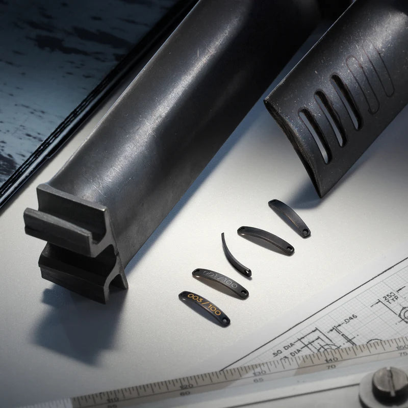 Oryginalne łopaty silnika Rolls-Royce/Snecma Olympus 593 z Concorde’a, pochodzące z certyfikowanych partii nr 3464 i 3335, zostały precyzyjnie przekształcone w numerowane plakietki. Każde złote grawerowanie zawiera nie tylko oznaczenie limitowanej edycji, lecz także pamięć tysięcy godzin ponaddźwiękowych lotów nad Atlantykiem. To proces, który sprawia, że każdy egzemplarz staje się niepowtarzalnym fragmentem historii lotnictwa, na zawsze wpisanym w jedno z naszych czasomierzy.