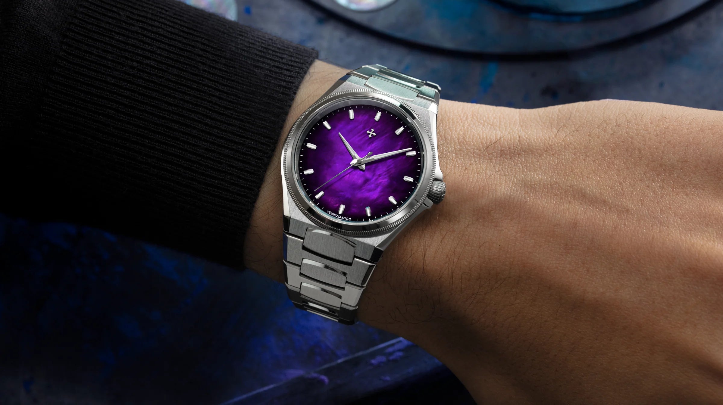 Projekt tego czasomierza czerpie inspirację z weneckiego Arsenału – historycznej stoczni, która przez stulecia stanowiła serce innowacji technologicznych Republiki Serenissima. Model Arsenale łączy klasyczne wykończenia z odważnym, nowoczesnym wzornictwem, tworząc idealną harmonię między tradycją a nowoczesnością. Jego ultrapłaska koperta oraz zintegrowana bransoleta o satynowanych ogniwach z polerowanymi detalami sprawiają, że jest to model niezwykle elegancki, a zarazem współczesny w swoim wyrazie.