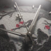 Na deklu koperty wygrawerowano japońskie znaki 墨絵 (Sumi-e), oznaczające technikę malarską, która stała się inspiracją dla tego modelu. Otaczający je grawerowany motyw przywodzi na myśl tusz rozpuszczający się w wodzie — symbol równowagi i harmonii między gestem a materią. Płynne linie i głębia grawerunku tworzą dynamiczny, żywy efekt, przywołujący ruch pędzla po papierze. Na dole widnieje numeracja od 1 do 500, podkreślająca unikalny charakter każdego egzemplarza.