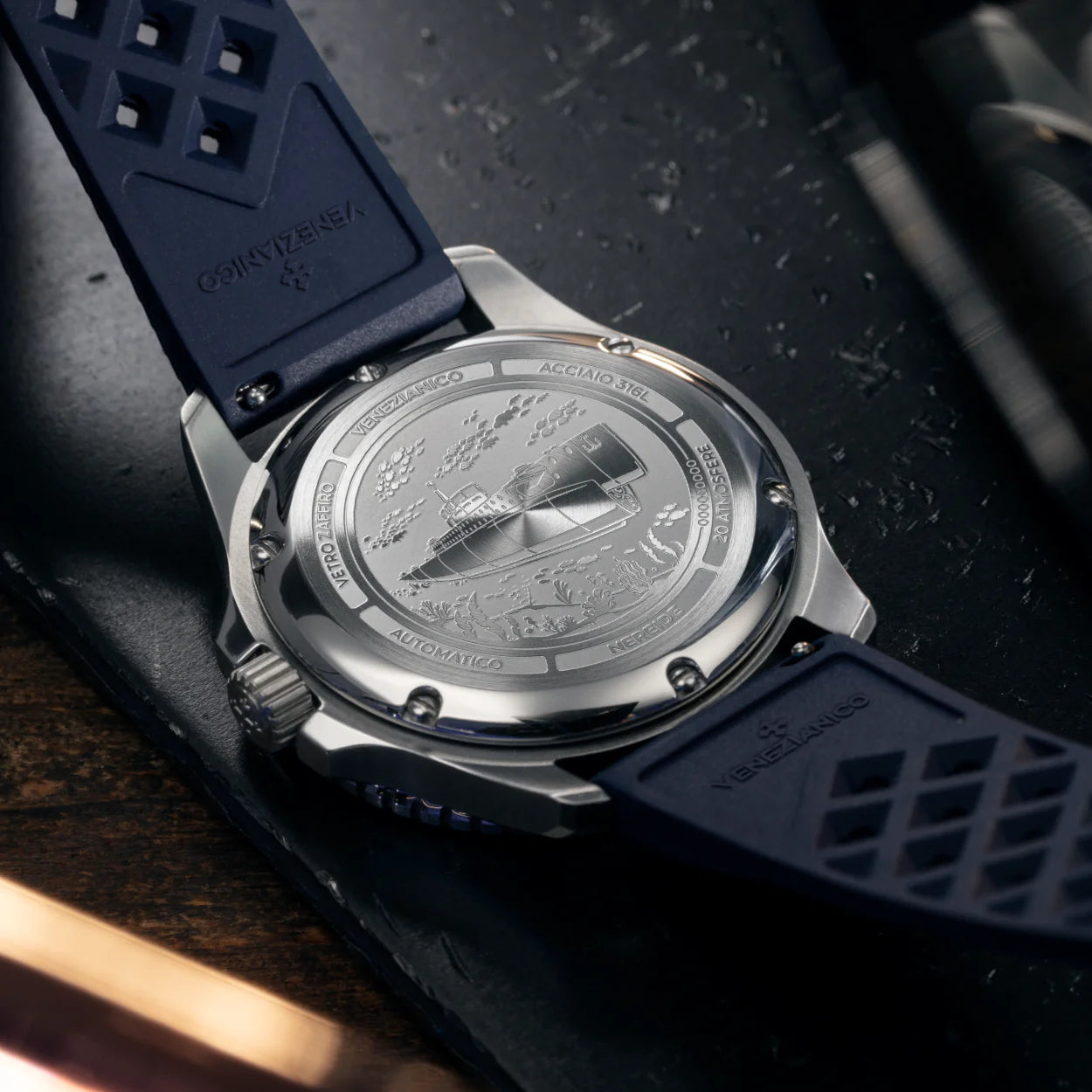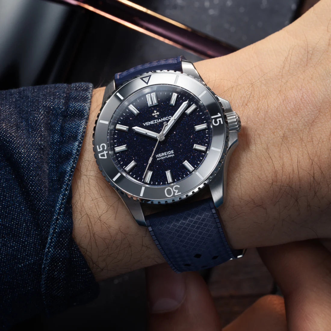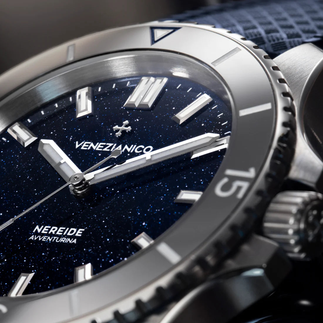 Nereide Avventurina czerpie swoją nazwę z weneckiego szkła z XVII wieku, które wyróżnia się metalicznymi drobinkami tworzącymi refleksy przypominające gwiazdy na nocnym niebie. Wytrzymały i odporny na zarysowania bezel z wolframu doskonale uzupełnia smukłą kopertę o grubości 10,65 mm. Dzięki kompaktowej sylwetce oraz paskowi Tropic z gumy FKM zegarek zapewnia wyjątkową ergonomię i wygodę noszenia w każdej sytuacji