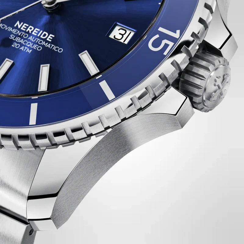 Nasz zegarek do nurkowania, który jest wodoodporny do głębokości 200 metrów, wziął swoją nazwę od jednego z ostatnich cudów weneckiej techniki morskiej, łodzi podwodnej Nereide. Ten zegarek jest w rzeczywistości zaprojektowany tak, aby wytrzymać silne obciążenia, dzięki czemu jest szczególnie odpowiedni dla osób uprawiających sporty wodne.