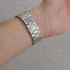 Do wykonania tej bransolety potrzeba aż szesnastu różnych form, a jej projekt został oficjalnie zarejestrowany. Podwójne wykończenie – połysk i satyna – nawiązuje do koperty i sprawia, że centralne ogniwa wyróżniają się elegancją i harmonią. Zapięcie motylkowe zachowuje ciągłość wzoru dzięki idealnemu zintegrowaniu z końcowym ogniwem centralnym.