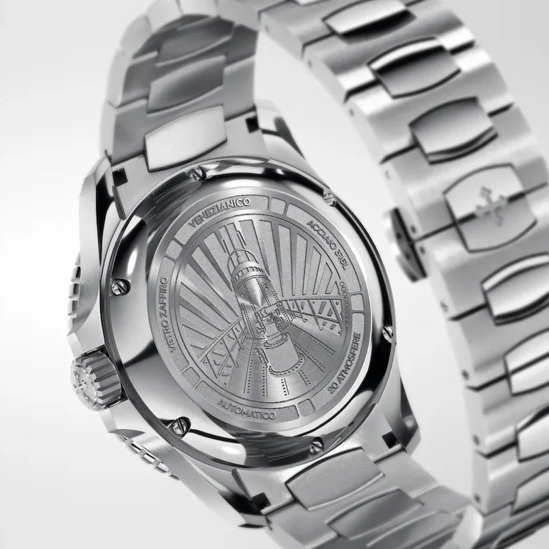 Nasz zegarek do nurkowania, który jest wodoodporny do głębokości 200 metrów, wziął swoją nazwę od jednego z ostatnich cudów weneckiej techniki morskiej, łodzi podwodnej Nereide. Ten zegarek jest w rzeczywistości zaprojektowany tak, aby wytrzymać silne obciążenia, dzięki czemu jest szczególnie odpowiedni dla osób uprawiających sporty wodne.