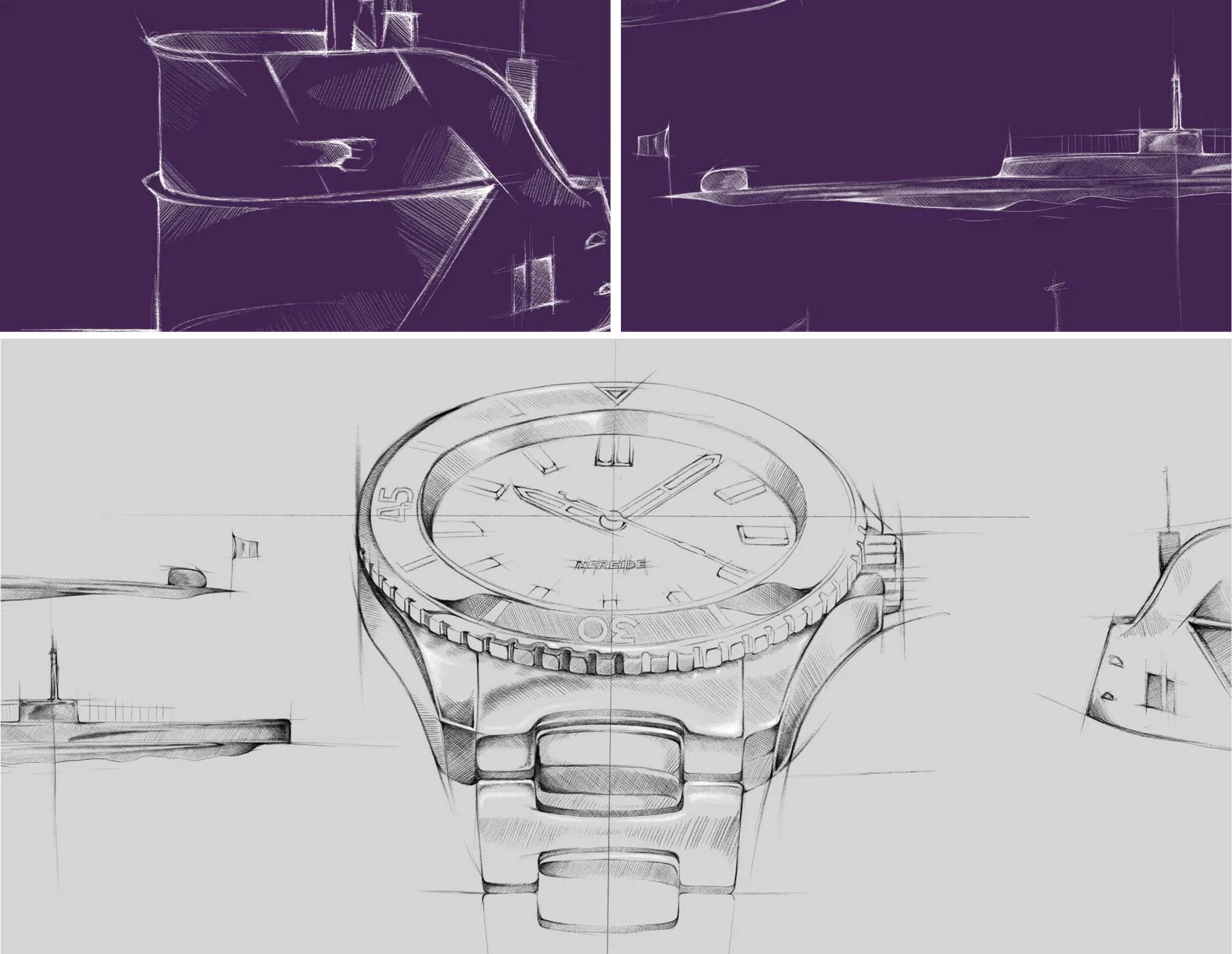 Łódź podwodna Nereide, która stała się inspiracją dla całej kolekcji, została przedstawiona w grawerunku na środku dekla, w zanurzeniu. To symbol, że zegarek nie ustępuje w kwestii parametrów nurkowych – zachowuje wodoodporność do 200 metrów i posiada obrotowy bezel, który pozwala na precyzyjne mierzenie czasu nurkowania.