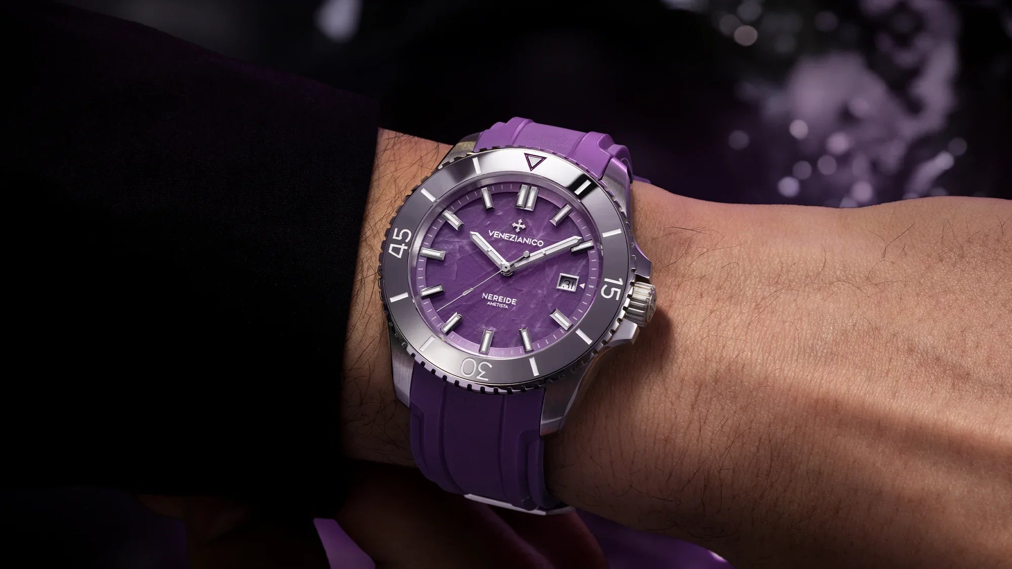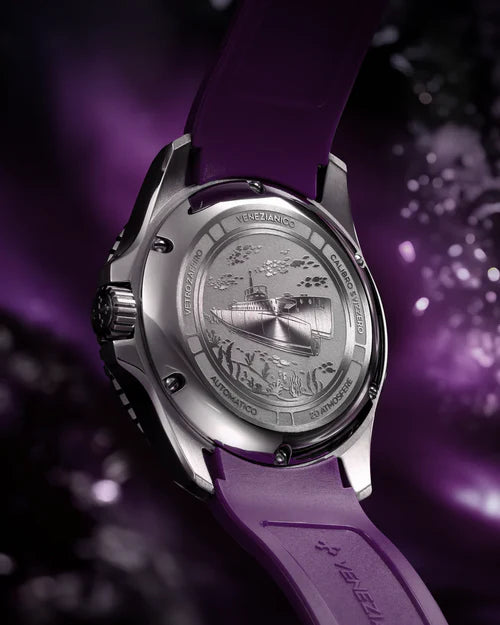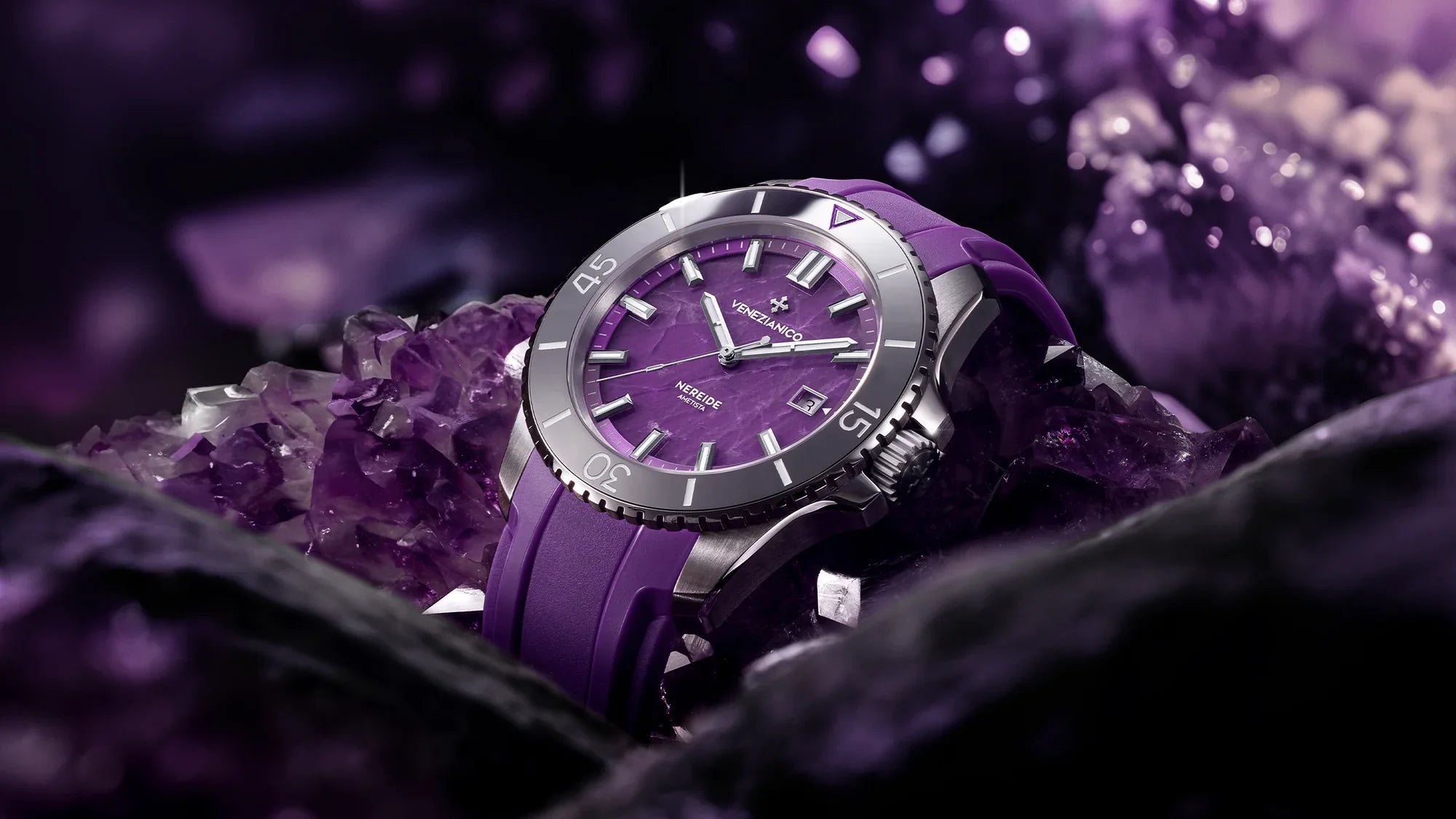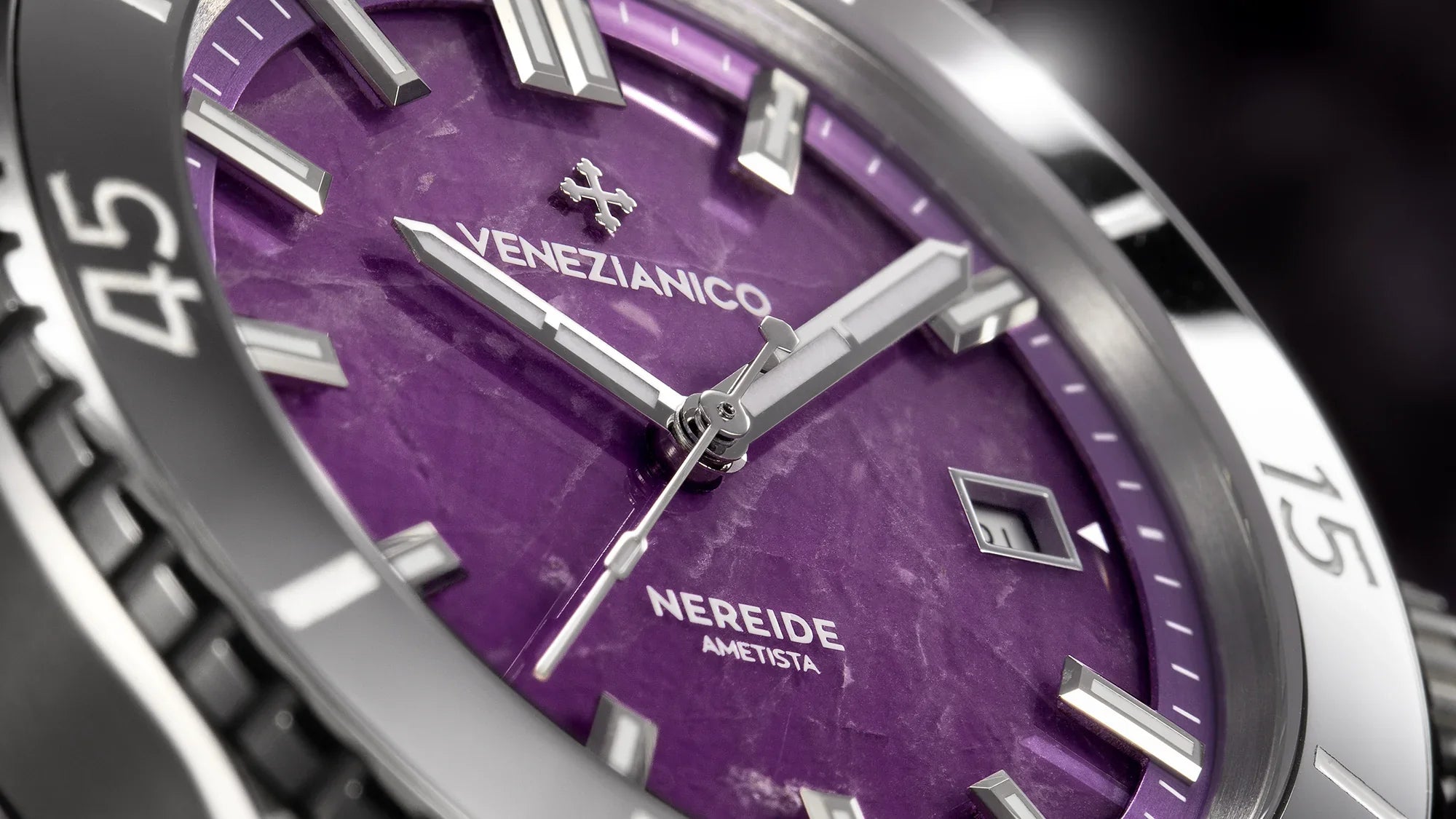 Nereide Ametista łączy bogatą tradycję rzemiosła weneckiego z eksperymentowaniem współczesnych materiałów. Oprócz cennego cyferblatu, wyróżnia się zastosowaniem lunety z wolframu, niezniszczalnego metalu znanego ze swoich doskonałych właściwości mechanicznych i trwałości