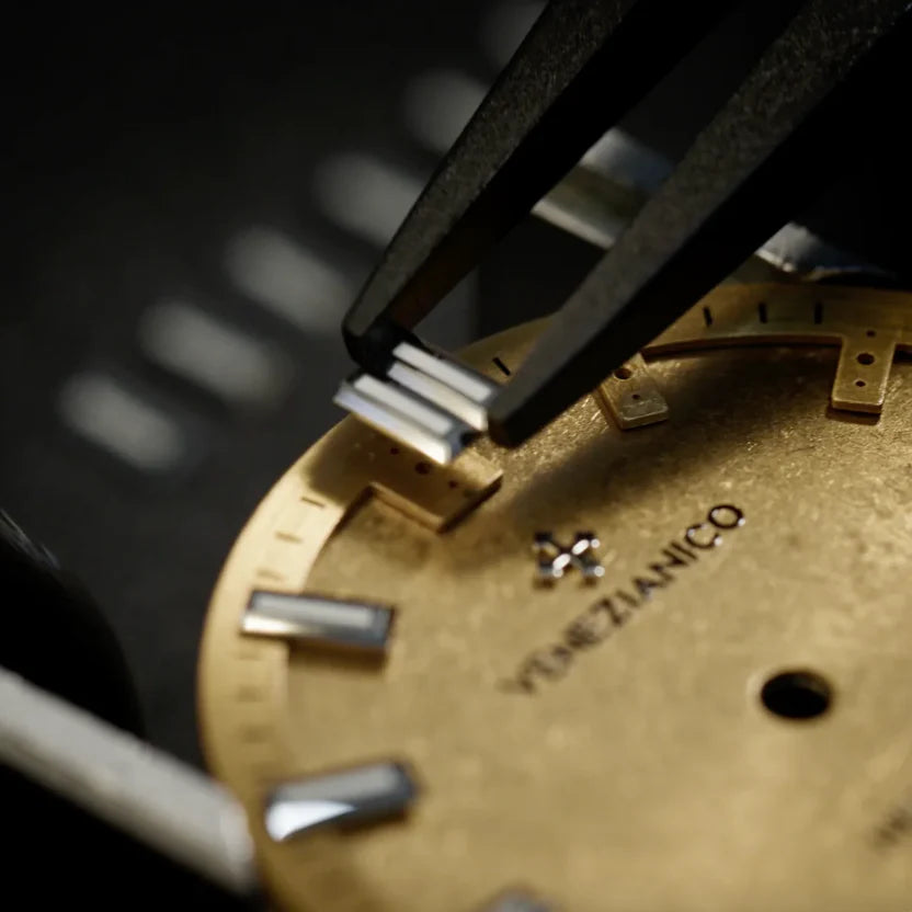 Noszenie zegarka z tarczą pokrytą złotem łączy Cię z bogactwem weneckiego rzemiosła i świetnością Republiki Serenissima. Każde spojrzenie przywołuje wieki mistrzostwa, w których złoto symbolizowało władzę i piękno.