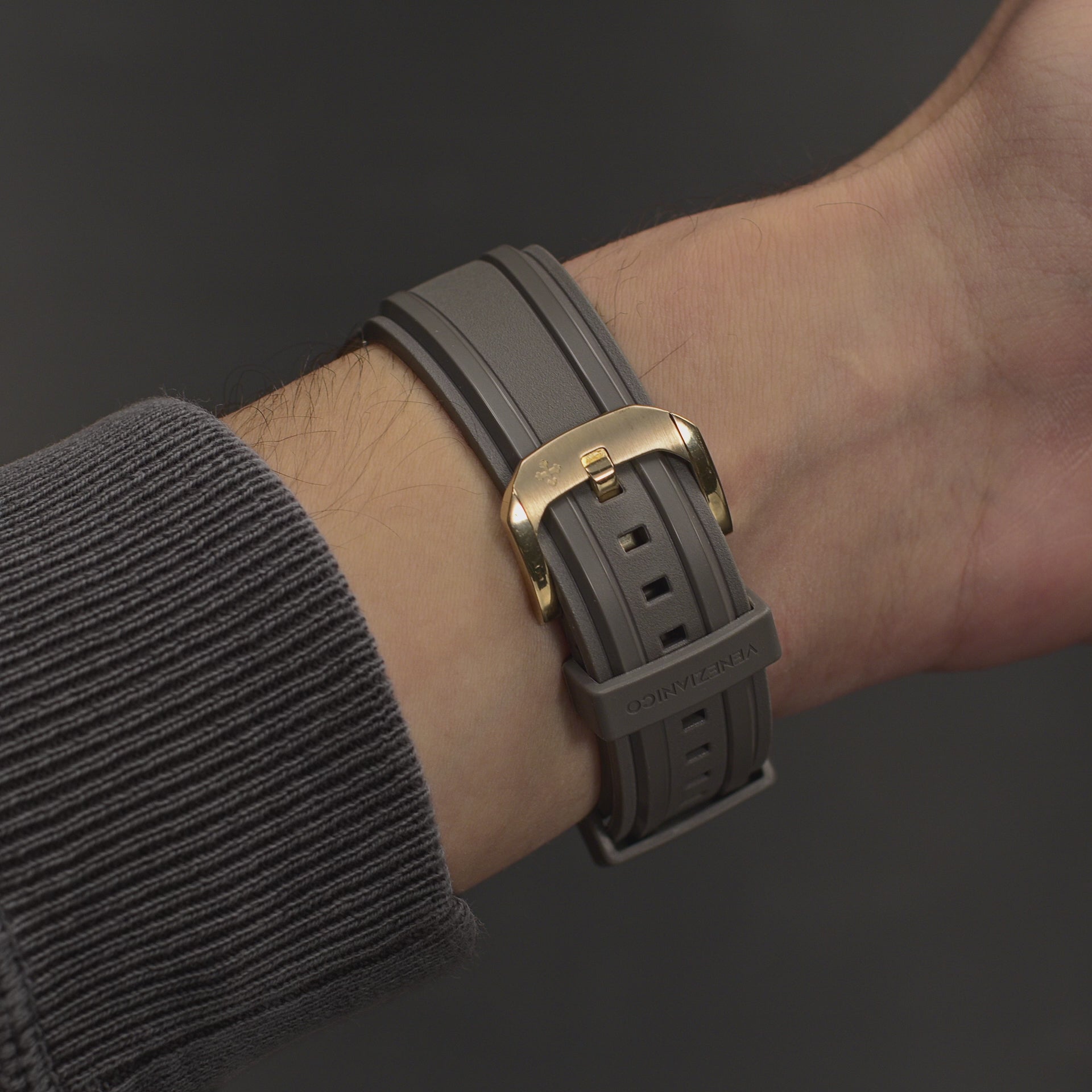 Aby podkreślić wyjątkowy charakter Nereide Bronze, można wybrać ręcznie wykonany pasek z naturalnej, włoskiej skóry. To unikatowe dzieło zdobią grawery inspirowane słynną mozaiką z Bazyliki św. Marka, łącząc chwałę weneckiej przeszłości ze współczesnym kunsztem rzemieślniczym.