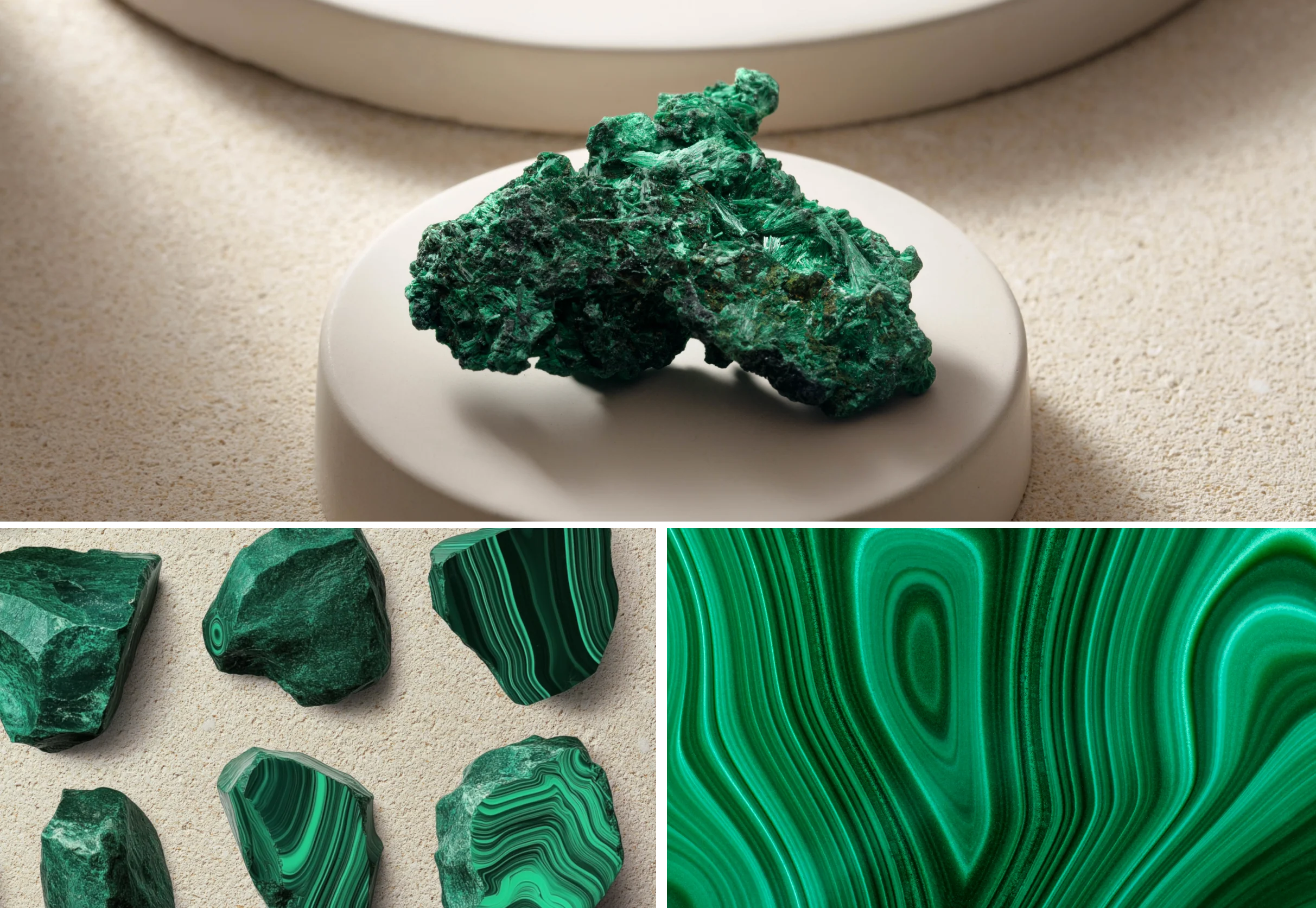 Malachit powstaje w wyniku procesu chemicznej krystalizacji w złożach miedzi. Gdy woda bogata w minerały wchodzi w reakcję z metalem, tworzą się charakterystyczne, unikalne wzory. W naturze malachit występuje w postaci zwartych brył, kulistych form lub stalaktytów. Jego barwa obejmuje różne odcienie zieleni – od jasnych po głębokie, często z hipnotyzującymi, koncentrycznymi lub falistymi wzorami. Każdy fragment malachitu to niepowtarzalne dzieło natury, zachwycające swoim wyglądem i przypominające o jej niezwykłej sile przemiany.