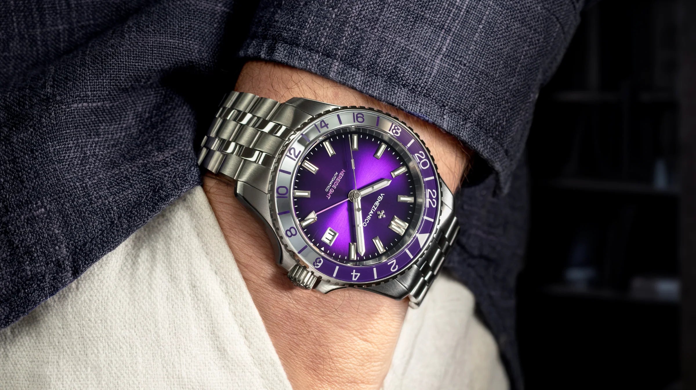 Szlif słoneczny wzbogaca powierzchnię tarczy o dynamiczne refleksy, podczas gdy cieniowany efekt fumé tworzy głębię koloru, która staje się intensywniejsza przy jej krawędziach. W rezultacie tarcza zmienia swój charakter w zależności od oświetlenia i kąta patrzenia. Nakładane, fazowane indeksy w formie sztabek zostały pokryte powłoką Super-LumiNova BGW9, co gwarantuje doskonałą czytelność nawet w trudnych warunkach oświetleniowych.