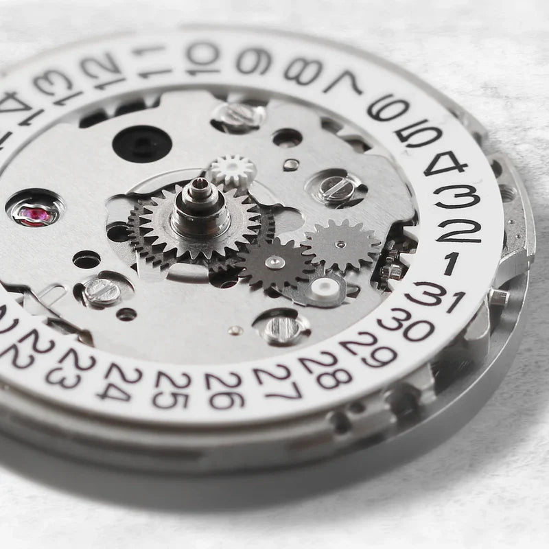 Seiko NH34A to przełomowy kaliber GMT, który łączy przystępną cenę z wysoką jakością. Produkowany przez Seiko Instruments Inc., jednego z najbardziej cenionych producentów mechanizmów automatycznych na świecie, oferuje 24 kamienie łożyskujące, częstotliwość pracy 21 600 wahnięć na godzinę oraz 41 godzin rezerwy chodu. Wyposażony jest w niezależną wskazówkę GMT, dwukierunkowy naciąg automatyczny, a także funkcję ręcznego naciągu i stop-sekundy, co czyni go niezawodnym i wszechstronnym rozwiązaniem.